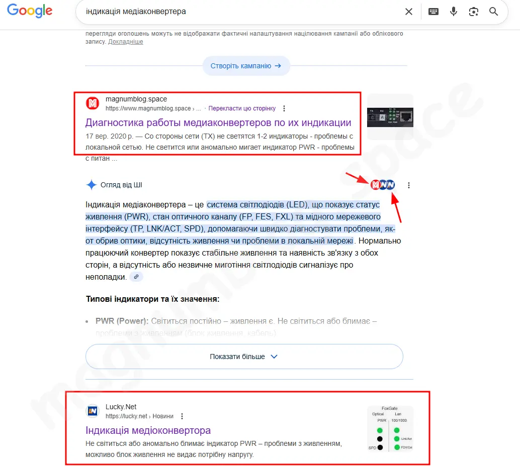 У мене в блозі, є один з популярних дописів під назвлю "Диагностика работы медиаконвертеров по их индикации", що на поточний момент має трішки більше ніж 190 тисяч переглядів. Але слід зазначатичи, що написаний він ще до початку війни, в осени 2020 року. Як видно з назви це інструкція по діагностиці медіа-конвертерів (це перетворювачі оптичного сигналу на ethernet). Ця інструкція одна з перших в пошуковій видачі! Невеличкий привід для годості, що зробив щось корисне =)